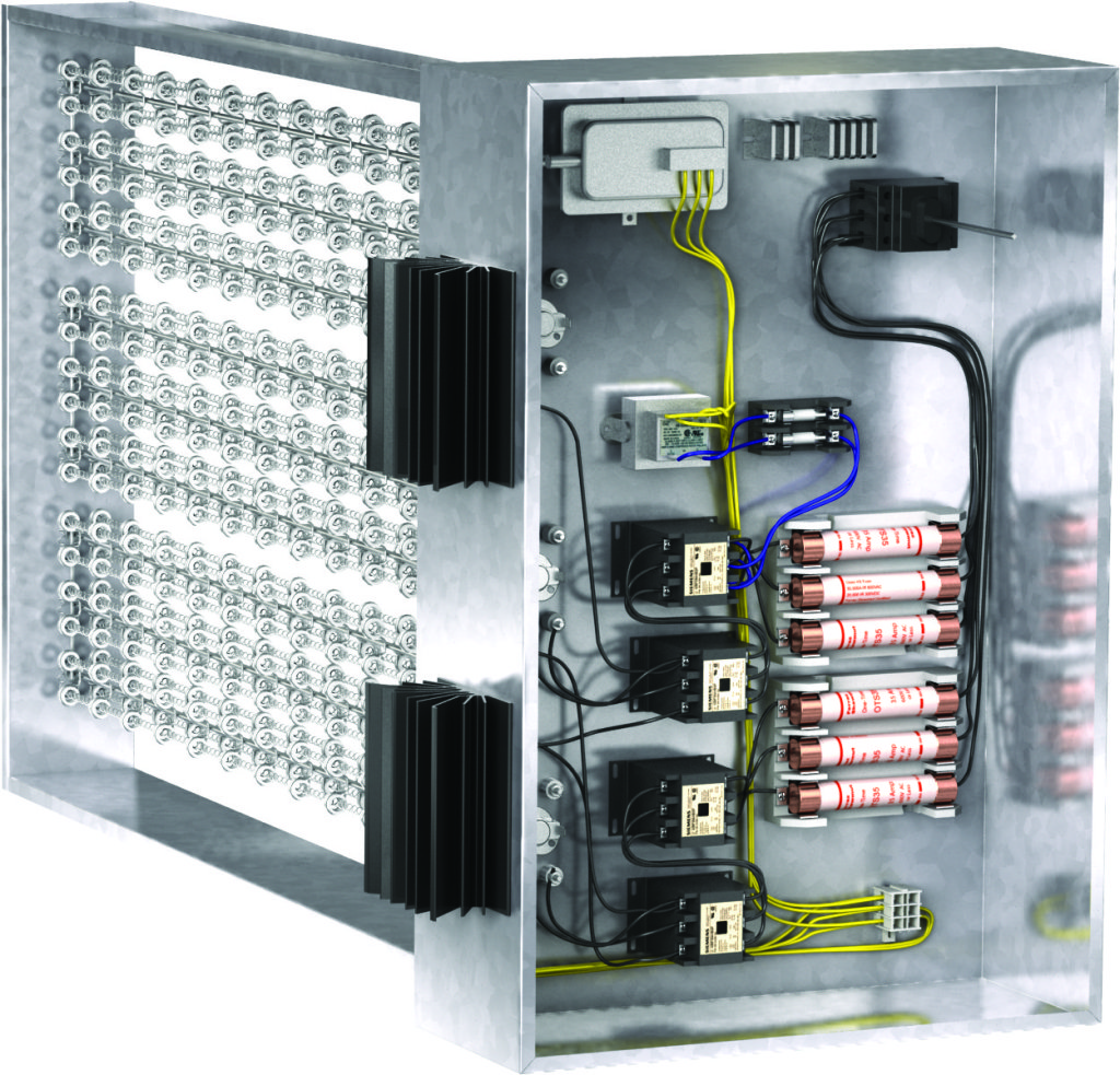 The IDHB series is an economical duct heater offered in select sizes to support straightforward electric heating applications. It is compatible with 50/60 Hz power supplies and can be mounted in horizontal or vertical up airflow configurations for installation flexibility. Capable of delivering up to 18 kW per square foot, the IDHB features staged heater controls (1–3 stages) and is available in voltages ranging from 120/1 through 480/3. Heating capacity and staging options vary based on voltage, phase, and heater dimensions—allowing the unit to be matched appropriately to project requirements.