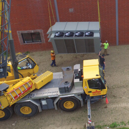 Installing rooftop equipment posed another challenge. The standing seam metal roof could not support any large HVAC units without creating emergency egress issues. Furthermore, the work had to be completed without much downtime.